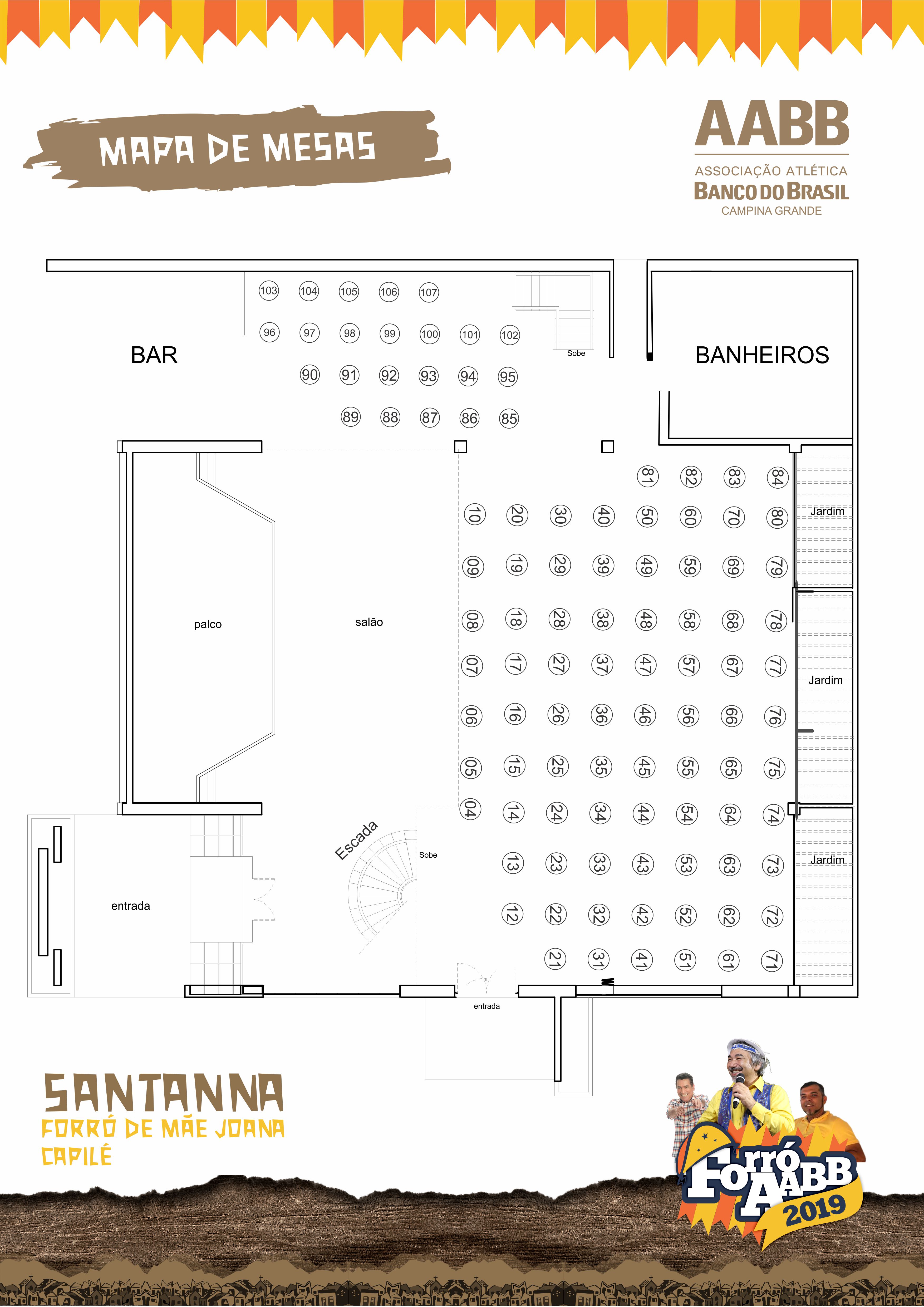 Neste ano a AABB preparou uma programação muito especial para vocês. No dia 06 de Julho, Santanna, o Cantador, Capilé e Forró de Mãe Joana prometem animar essa noite tão especial. Os ingressos são divididos em Individual Associado e Individual Inteira. Além destes, serão disponibilizadas mesas e camarotes, sendo os camarotes comercializados para 10 pessoas e as mesas para 4 pessoas.
